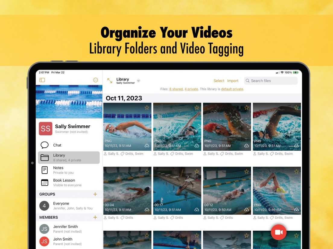 * Organize videos by athlete or team. Sort by private or shared videos, add titles and tags to easily locate and search through your videos.