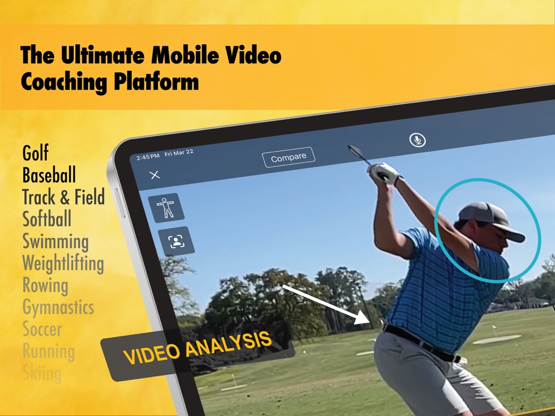 * Compare two videos against each other to analyze form or track improvement. Comparisons can be done side-by-side or overlaid on top of each other.
