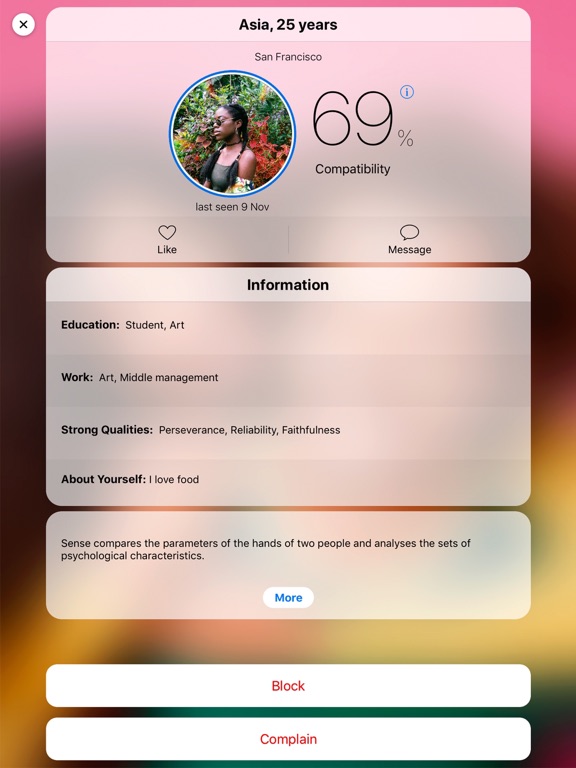 Find new friends and communicate with them thanks to the Search for Compatible People feature. Now you can find new friends, reliable business partners, or even find your love anywhere in the world. This is one of Palmist’s key goals — to help connect the most compatible people.