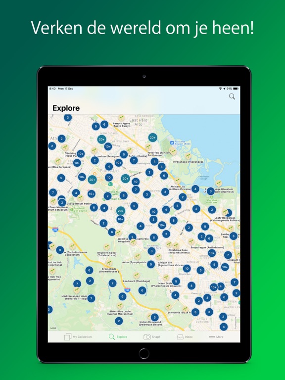 Met de functie ""Verkennen"" kunt u onze SnapMap gebruiken om geïdentificeerde planten overal ter wereld te vinden. Bekijk de anonieme foto's gemaakt met PlantSnap en ontdek de verschillende soorten bloemen, bladeren, bomen, paddenstoelen en cactussen die over de hele wereld verspreid zijn! Leer hoe u voor uw planten kunt zorgen: philodendron hoop, orchidee, luchtplant, vleesetende plant, exotische bloem en meer.