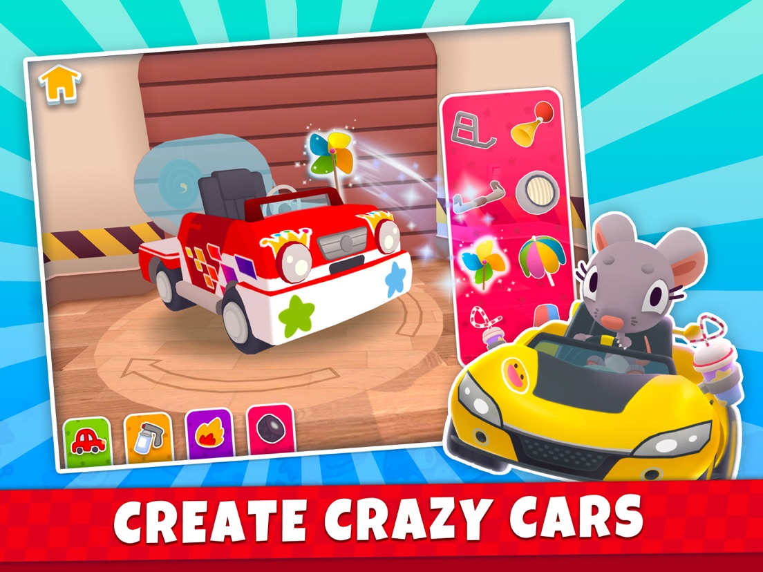 With Puppy Cars you can create crazy cars, drive them and explore Puppy Town.