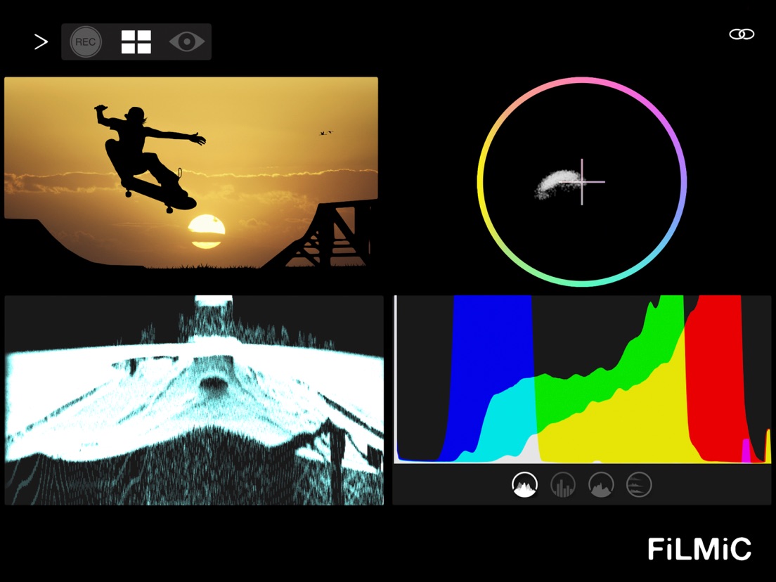 You can switch between modes on the fly to check analytics and composition. Remote can also be set up in ‘preview-only’ mode allowing a camera operator to perform all controls from the device running Filmic Pro and allowing the Remote to be used solely for monitoring.