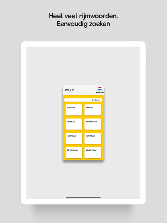 Rijmhulp, 1 app met verschillende talen, waaronder: