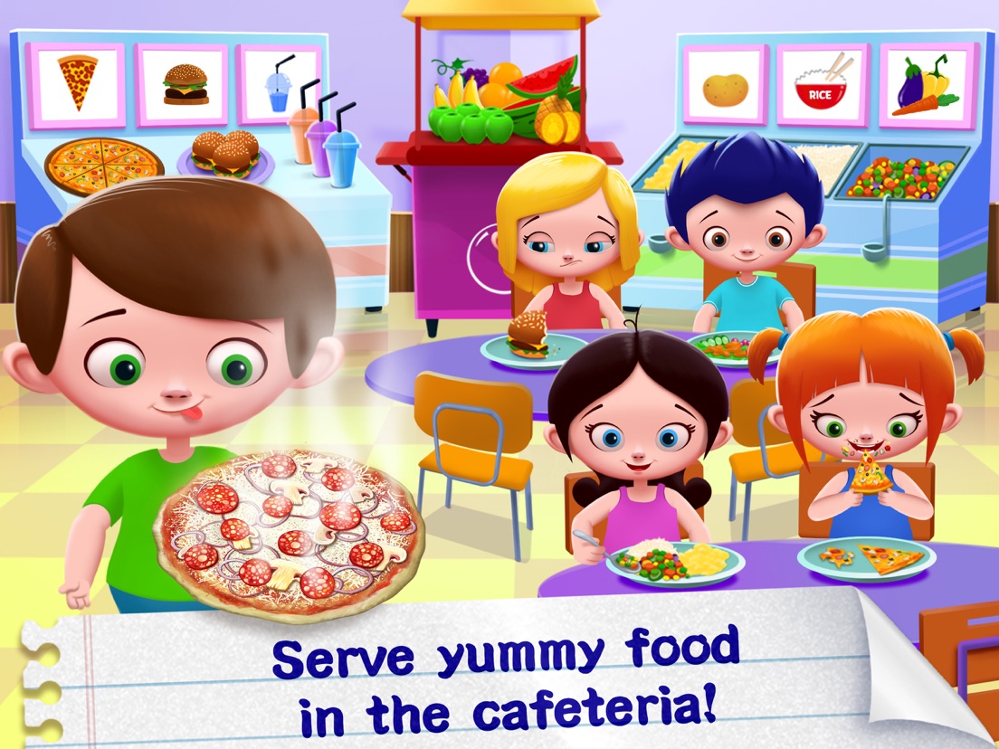 > Prepare yummy food in the cafeteria! Serve the students!