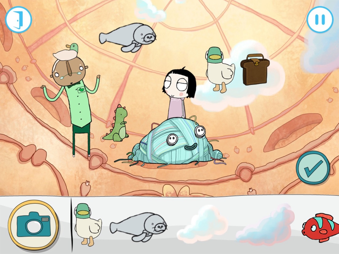 This app will ask for permission to access the camera and photo library of your device. The camera is used to take a photograph of the player for their user profile, which is used to track and retain progress through the game – you may also choose from a number of characters from Sarah & Duck to represent the player in the user profile. The photo library is accessed in order to store pictures the player may take of the parks they can create in the final activity of the app.