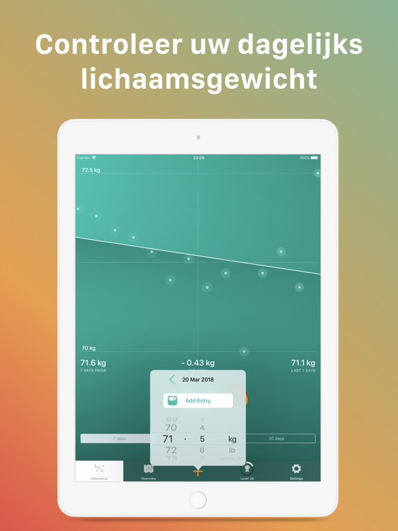 Uw gewicht veranderd dagelijks. In contrast met andere apps vergelijkt Scelta wekelijkse gemiddeldes en toont het uw echte vooruitgang!
