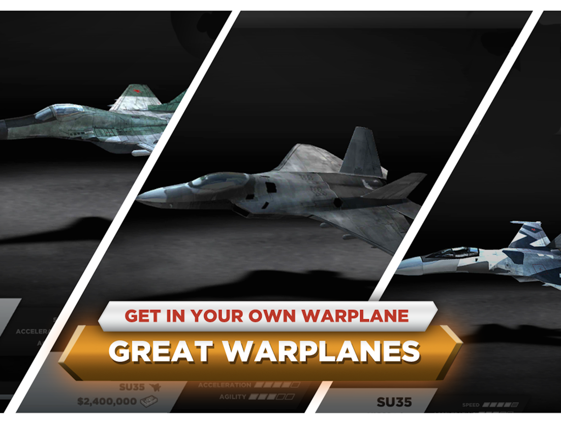 • Choose over 5 unique warplanes, each one has different performance