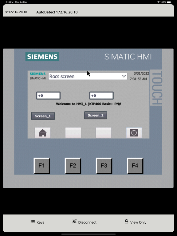 The screen can be displayed on the Sm@rtClient in "View only" mode, or a full-fledged, coordinated operation can be set up. Coordinated operation ensures that only one user has control at a time — either the operator station with Sm@rtServer or the Sm@rtClient app.