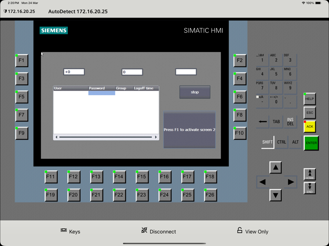 The Sm@rtClient app not only shows the selected HMI screen but also mirrors the complete device layout, including functional hardware buttons. This enables users to interact with the system as if they were physically present in front of the panel — except buttons are triggered via touch input on the mobile screen.