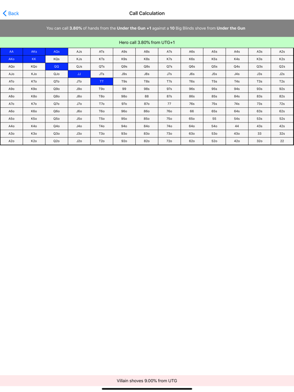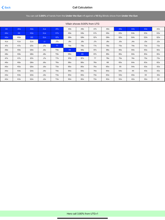 • Simply input your chips, raise size and ranges to get the perfect moves and make your opponents regret raising your blinds again.