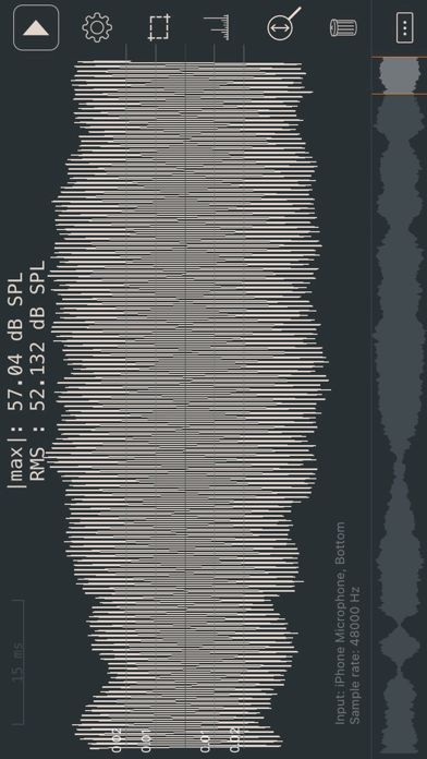 • Collecting recent data (last minute). You can move over all collected data. The amplitude of the waveform can be changed in the sound wave mode.