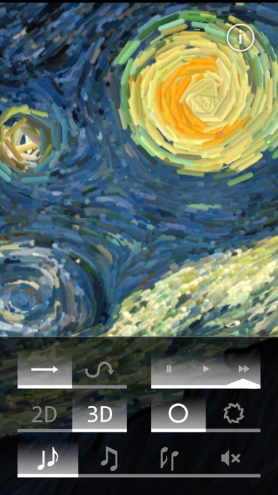 Watch the iconic flows of Vincent Van Gogh's "Starry Night" come to life, in a hypnotic animation! Drive the flows with your hand to create your own variation of the original painting! Dive in the landscape with immersive 3D zoom! Listen to the background ambient music, which is also responsive. Have an enchanting experience and re-discover a classic masterpiece.