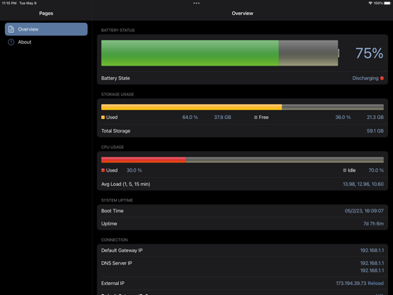 System Status is a lite version of System Status Pro - an advanced tool for monitoring your iPhone and iPad performance.