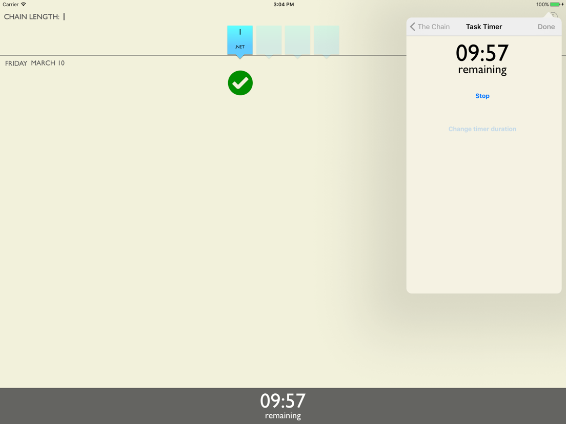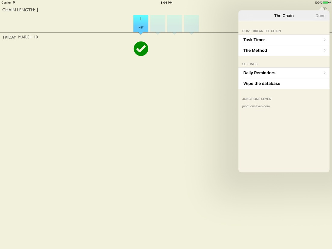 The Chain is a simple App that gives you everything you need to begin working the method and removes the need to buy a calendar and a marker.