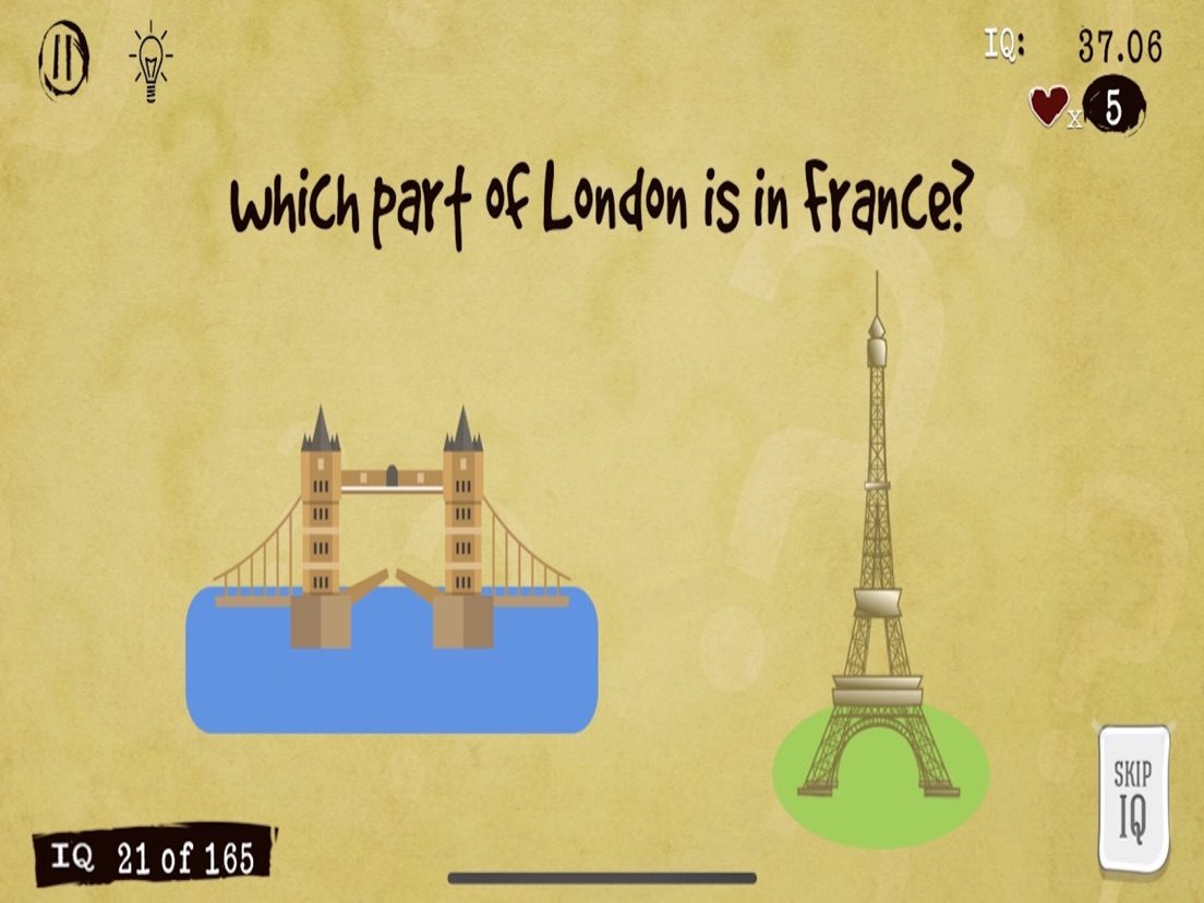 The Unbeatable Game is a brand new IQ puzzle game with a collection of brain crunching questions, and unthinkable answers you will never guess. Every single question is unique and pushes your brain to the absolute limit. The goal of this trivia game is not to be tricked. Each of the brain teasers is unique and pushes your thinking to the limit.