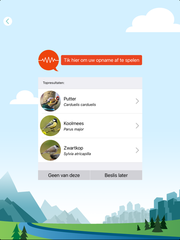 > De app geeft je de naam van de vogel of, bij minder goede opnames, een gerangschikte lijst van de meest waarschijnlijke soorten.