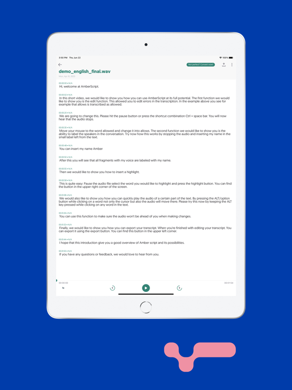 Transcribeer spraak naar tekst van Amberscript B.V. is een app voor iPhone, iPad en iPod touch met iOS versie 13.0 of hoger, geschikt bevonden voor gebruikers met leeftijden vanaf 4 jaar.