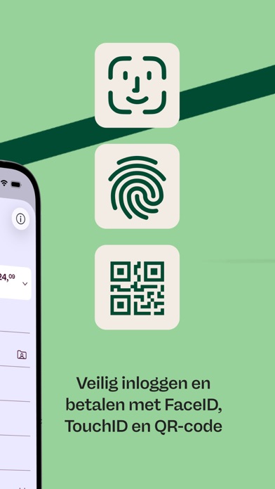 - Veilig inloggen en betalen met je persoonlijke inlogcode, Touch ID of Face ID