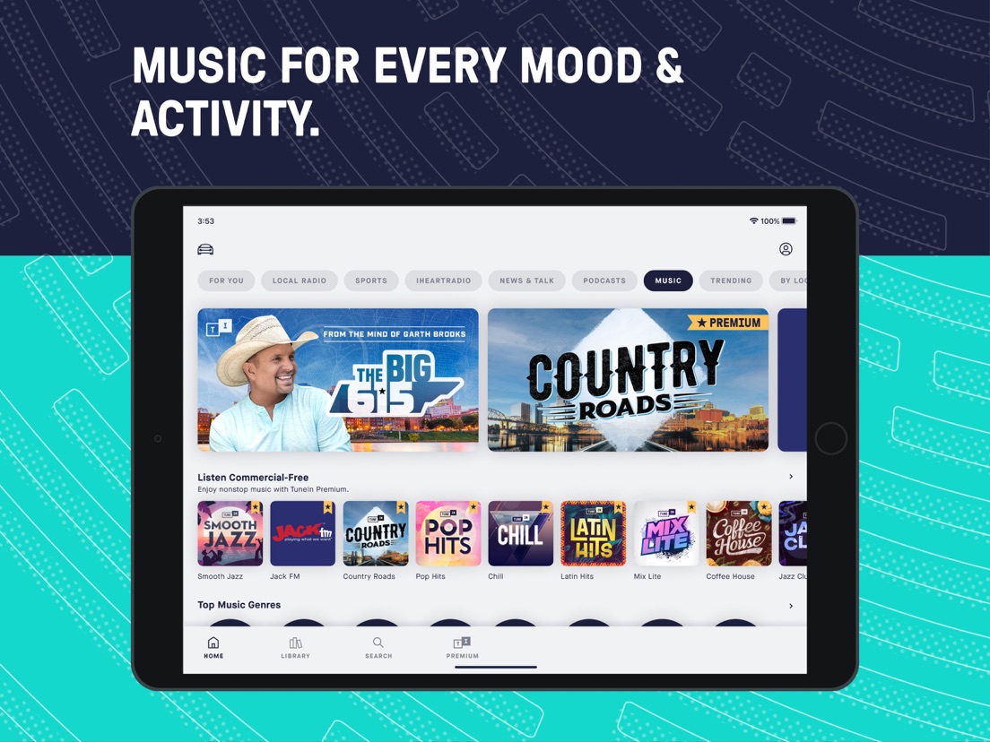 Met live sport, exclusieve muziekkanalen, snel het laatste nieuws, meer dan 5,7 miljoen podcasts en wereldwijd meer dan 100.000 radiozenders zul je nooit zonder luistervoer zitten.