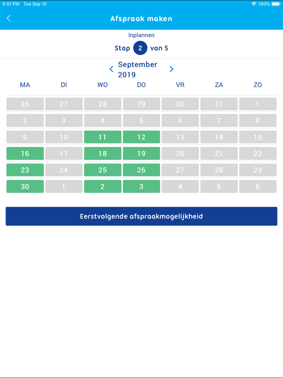 • Bekijk de lege plekken in de agenda van uw arts en boek een afspraak op het moment dat het u uitkomt. U moet tevens de reden van uw afspraak vermelden