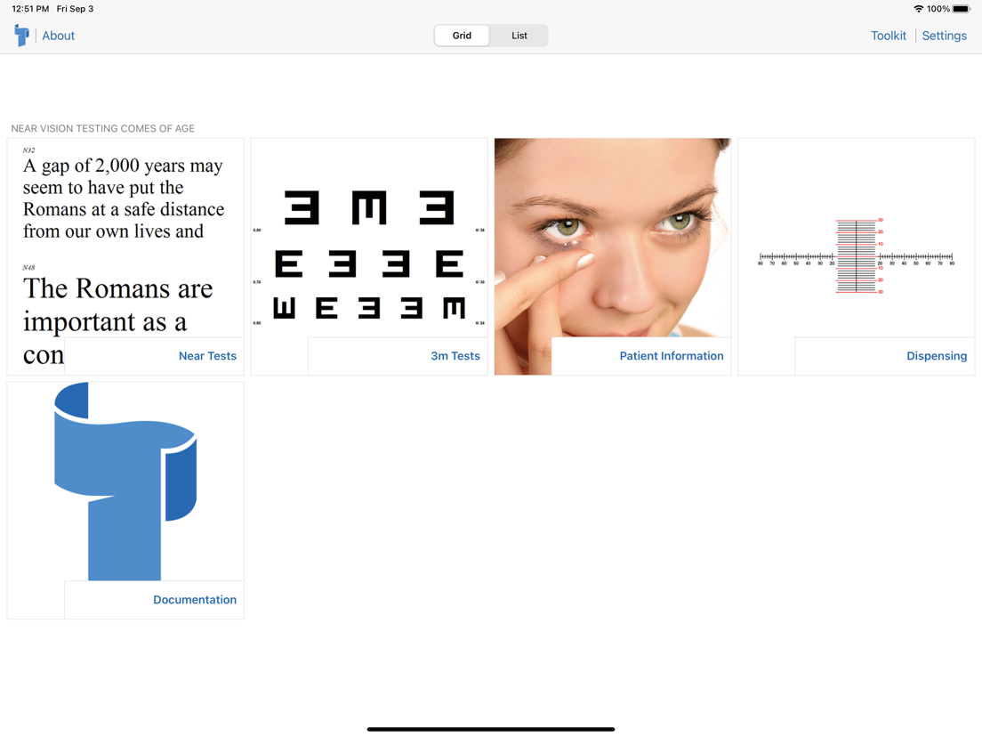 The Vision Toolbox exploits the superb graphics capabilities of the iPad to provide a huge range of vision assessment tools for eye care professionals (ophthalmologists, optometrists, orthoptists and opticians).