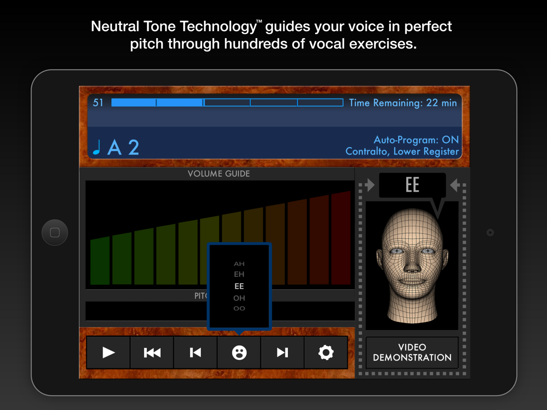- Neutral Tone Technology™: Instead of vocalizing to a pre-recorded human voice (and its imperfections), you instead vocalize to a tone that is always in perfect pitch.