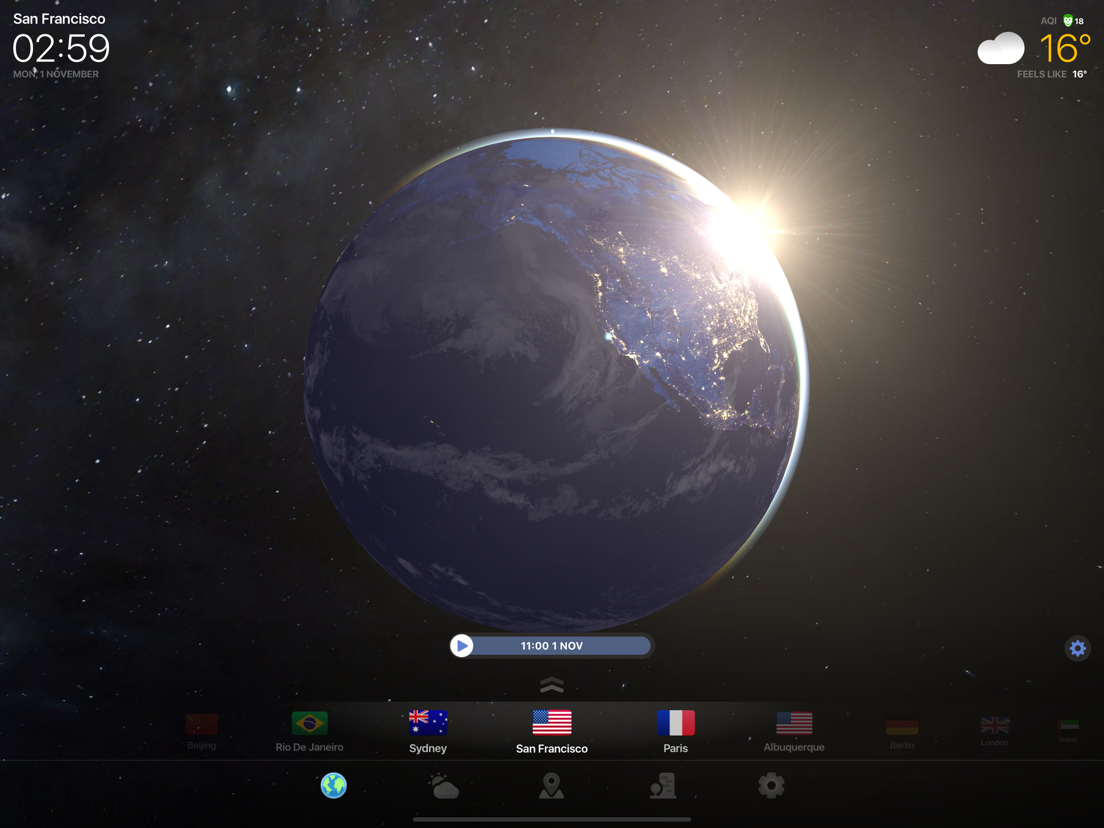 \t• Interactieve 3D Aarde-globe met real-time weerlagen