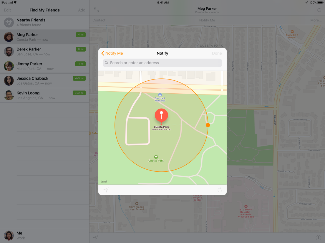 Je kunt Zoek mijn vrienden zo instellen dat je automatisch notificaties ontvangt op basis van locatie, bijvoorbeeld om je te laten weten dat een vriend is aangekomen op het vliegveld, dat een kind van school vertrekt of dat een gezinslid veilig is thuisgekomen. Je kunt ook meldingen instellen om vrienden te laten weten dat je van locatie verandert.