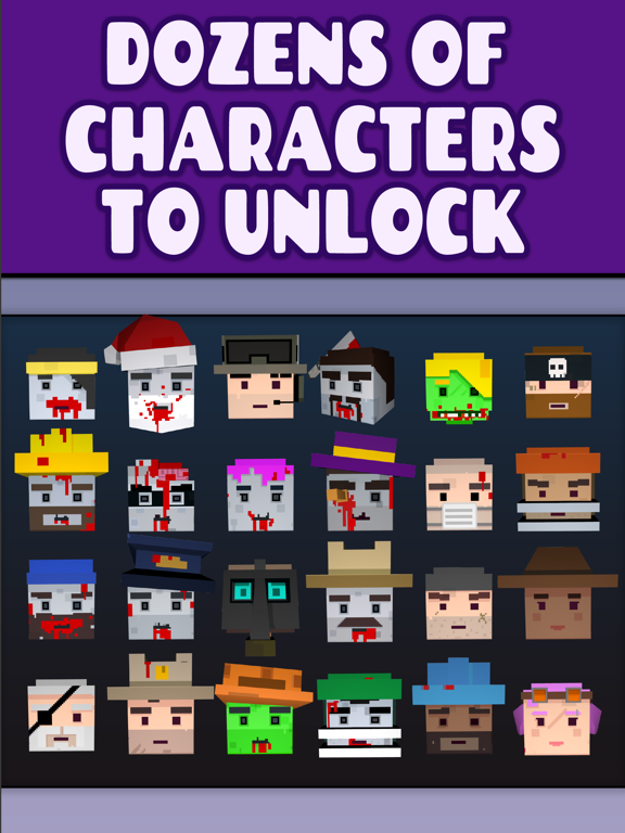 Collect shiny green zombie skulls to unlock new characters. Every 100 skulls you collect gets you a free character to play with.