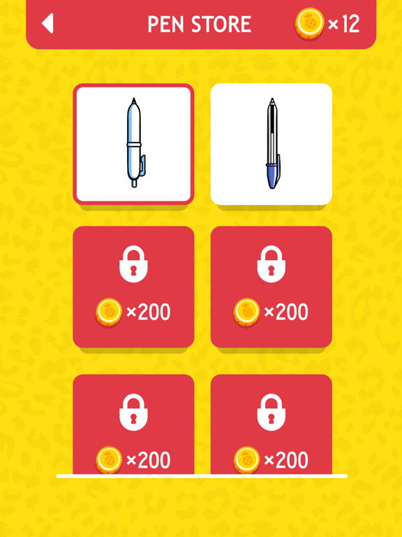 Met de verdiende muntjes kan je andere soorten pennen kopen. Elke nieuwe pen kost 200 muntjes. De meerwaarde van deze optie is wat mij betreft te verwaarlozen. De andere pennen zorgen er namelijk niet voor dat het spel makkelijker wordt, het heeft slechts een visuele waarde, welke ook minimaal is.